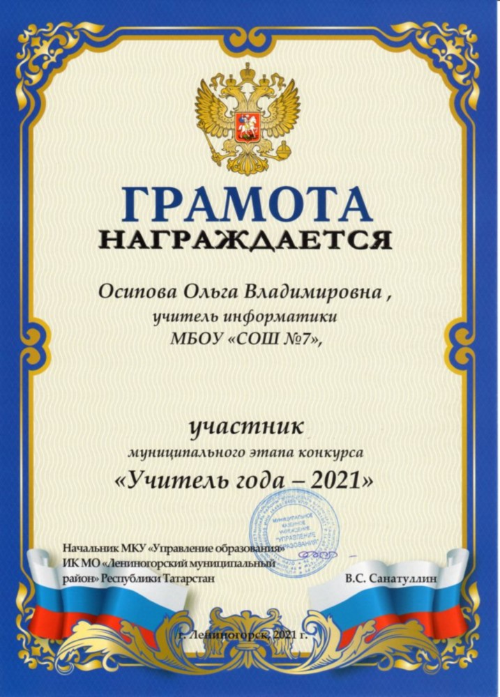 Приказ об итогах проведения муниципального этапа конкурса «Учитель года-2021 ».